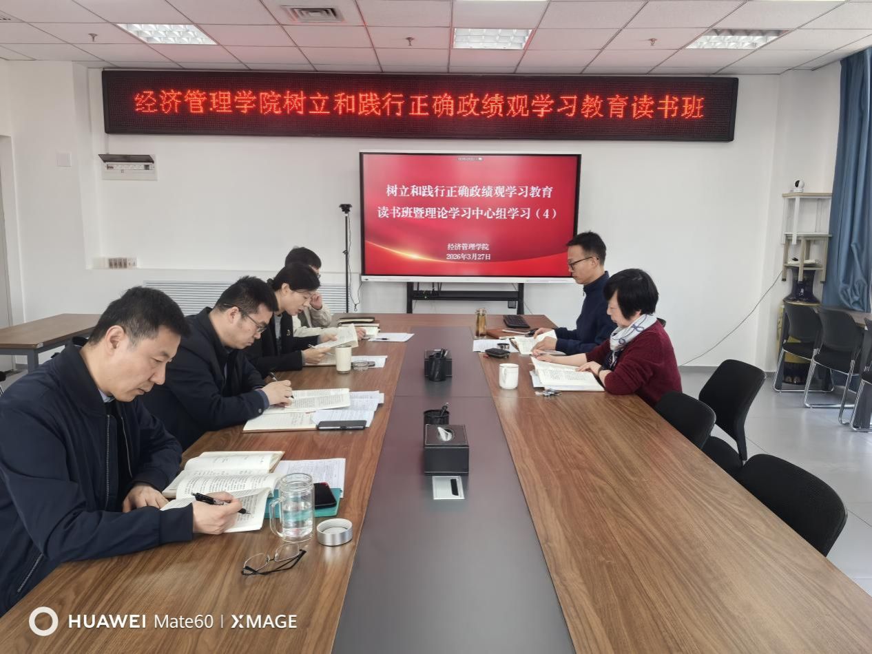 3月27日,经济管理学院召开党委理论学习中心组学习会。学院党委书记程新峰主持会议,党委理论学习中心组成员参加学习。会上,与会人员集中学习了《习近平关于树立和践行正确政绩观论述摘编》、习近平总书记对国家自然科学基金委员会工作作出的重要指示、习近平总书记复信法国国际学校中文班师生等重要内容。随后,中心组成员围绕“锚定学校‘十五五’规划,以实干担当谱写学校发展新篇章”主题开展交流研讨。 会议指出,要深刻...