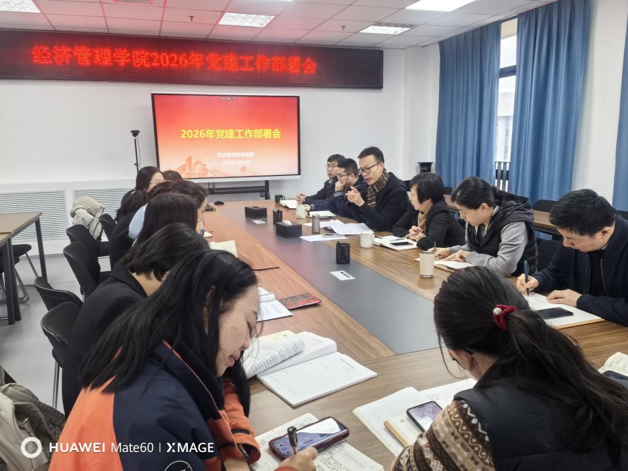 3月13日,经济管理学院召开党委理论学习中心组(扩大)学习会。学院党委书记程新峰主持会议,党委理论学习中心组成员、各党支部书记参加学习。会议集中学习了习近平总书记在二〇二六年春节团拜会上的重要讲话、《求是》杂志刊发的习近平总书记重要文章《让愿担当、敢担当、善担当蔚然成风》,传达学习了中共中央政治局讨论“十五五”规划纲要草案和政府工作报告的会议精神等。随后,全体参会人员共同观看了新华社励志视频《最燃...