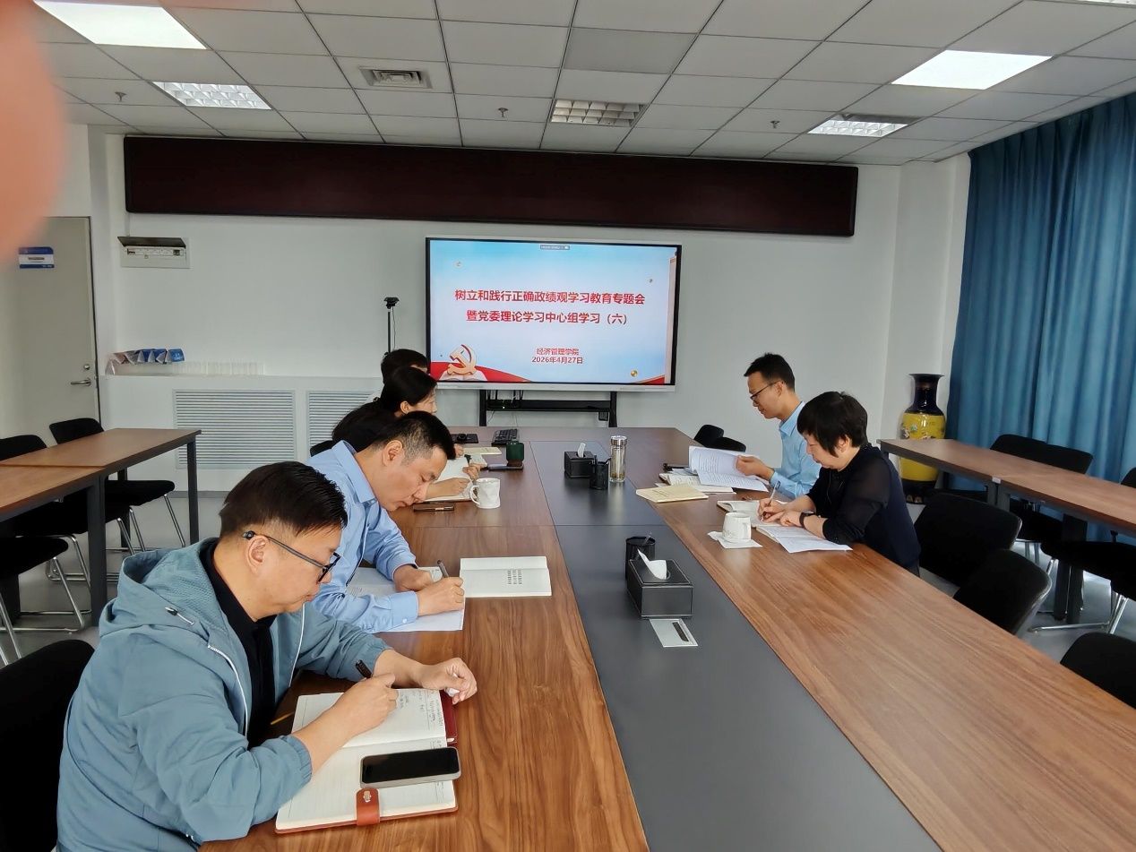 4月27日,经济管理学院召开树立和践行正确政绩观学习教育专题会暨党委理论学习中心组学习会。学院党委书记程新峰主持会议,学院党委理论学习中心组成员参加学习。