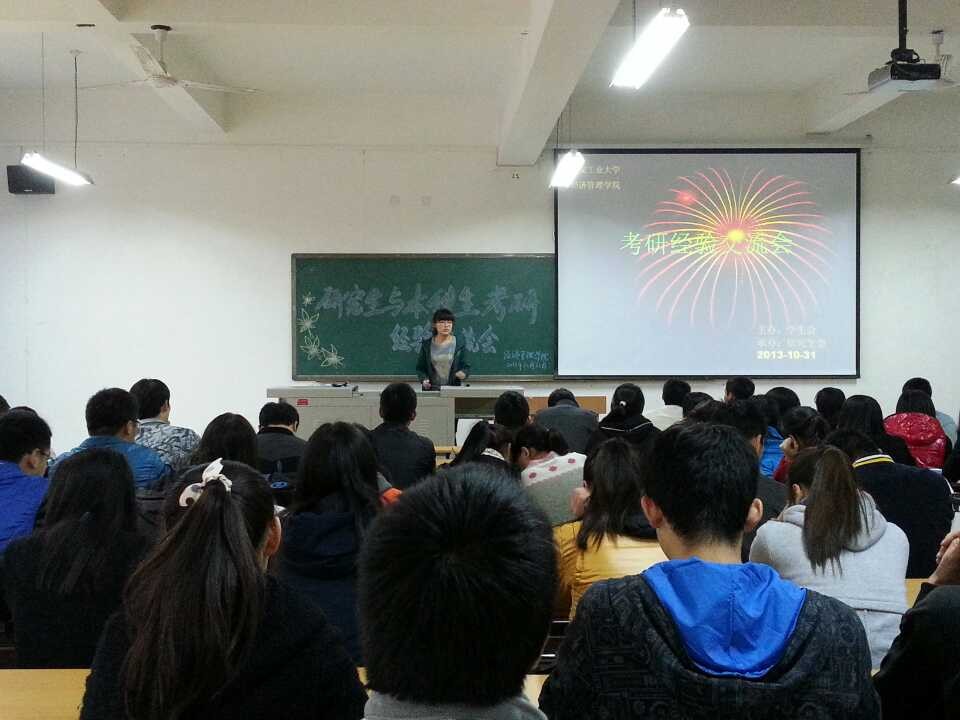 10月31日,经济管理学院研究生与本科生考研经验交流会在我校教五楼210举行, 2011级辅导员张玉玲老师、优秀研究生代表和2011级考研目标小组的同学参加了本次会议。