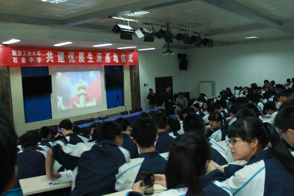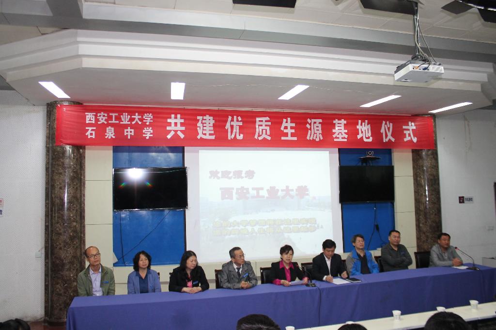 5月16日,雷校长一行前往安康市汉滨中学、石泉中学,在两校举行了隆重的授牌仪式,受到了两校师生的热情欢迎。雷校长在两校分别讲话,表达了对两校师生的感谢。她说,大学在中学建立优质生源基地,对于大学与中学都具有重要意义,架起了新的沟通和交流的平台,后续西安工大将与两所中学深入合作,促进合作双赢、共同发展。汉滨中学副校长韦祖安、石泉中学校长董才安,分别代表两校讲话,表达了对西安工业大学的感谢。他们希望与西安工大的合作能不断深入,希望在师资培训、学生课外科技活动方面得到西安工大的帮助。汉滨中学、石泉中学两校领导、教师代表、学生代表共计六百余人,见证了西安工大与两校建立优质生源基地的隆重仪式,还共同观看了我校的宣传短片《一路奋进一路歌》。