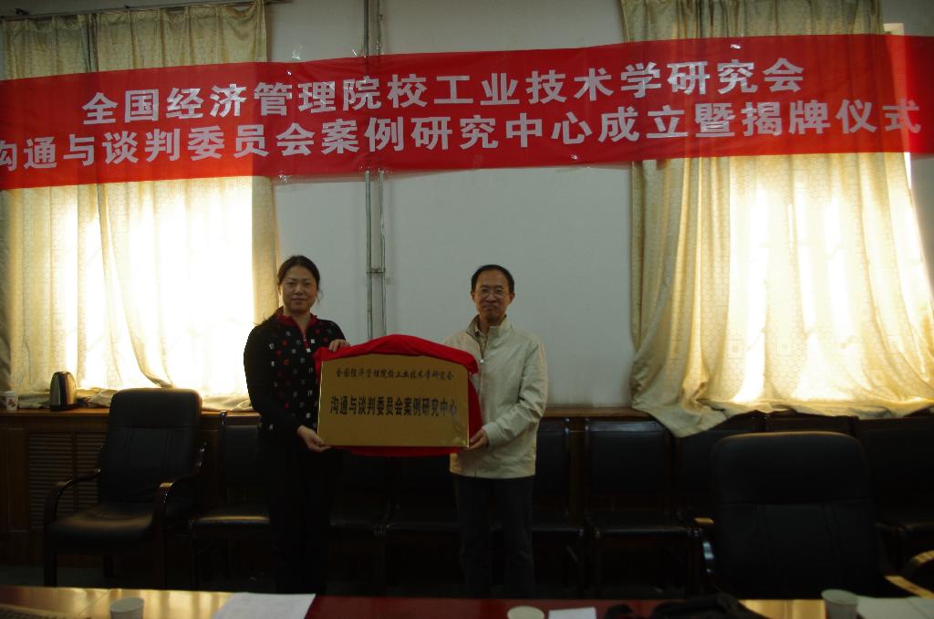 全国经济管理院校工业技术学研究会沟通与谈判委员会案例研究中心成立暨揭牌仪式于10月17日下午在西安工大金花校区举行。出席本次仪式的有全国经济管理院校工业技术学研究会曾小春理事长、沟通与谈判委员会张守刚秘书长、夏明学副秘书长、经济管理学院李纯青院长、程新峰副书记以及经管学院各系教师代表等。会议由经管学院经济系主任国亮主持。