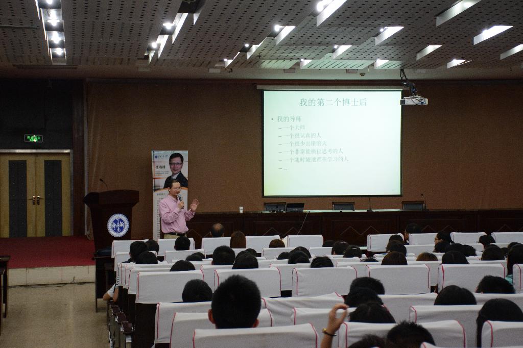 在报告会上,杜海峰教授与大家分享了他的学习、科研与人生经历,从专业、导师、科研、职业、人生等方面向大家讲述了他的收获与思考,让大家真切感受到了他“向学习表白的机会、与读书为伴的情怀、跟成功牵手的荣耀!”。饱含着对同学们的期待,他希望同学们能够珍惜大学美好时光,把更多的精力和时间投入到读书中,学习本领,增长才干。