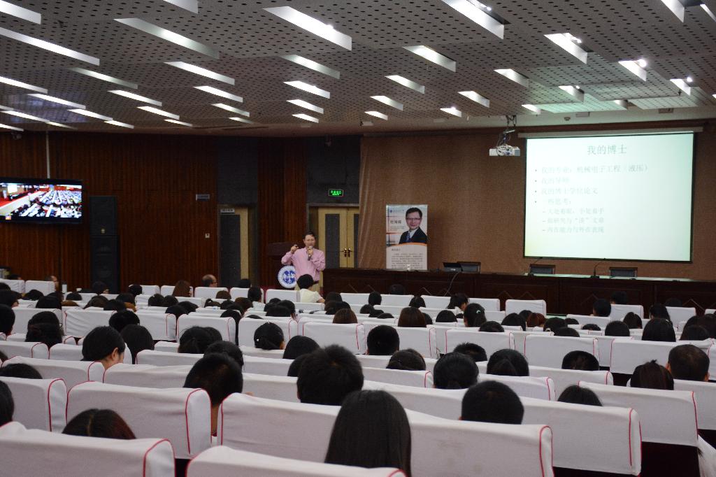 本次报告会由校党委宣传部、党委学工部、校团委主办,经管学院承办。机电、材化、电信、建工、经管学院等400余名师生参加了报告会。