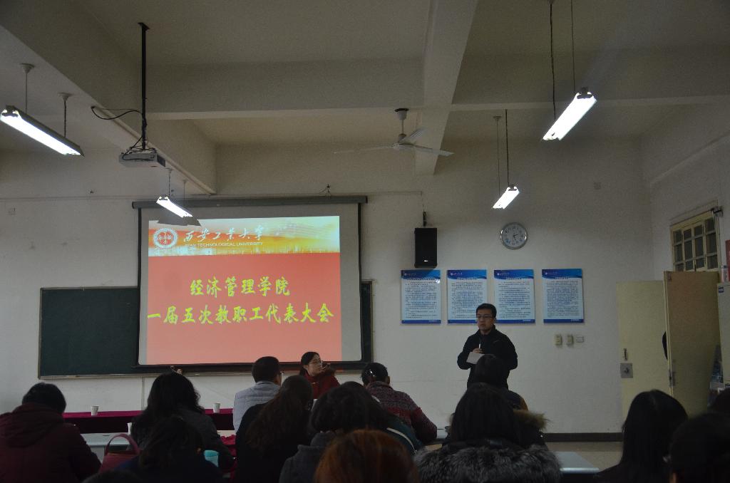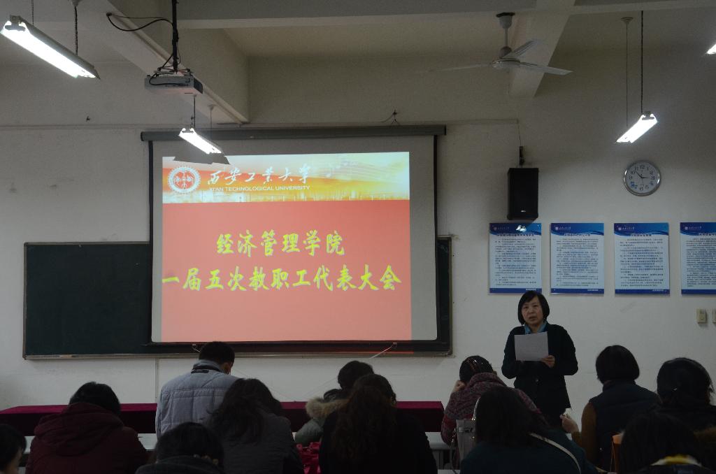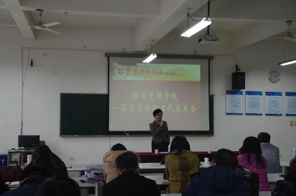 2016年12月23日下午,经济管理学院一届五次教代会在教5-506召开。学院教代会代表共计54人参加了大会。会议由学院工会委员冉霞主持。