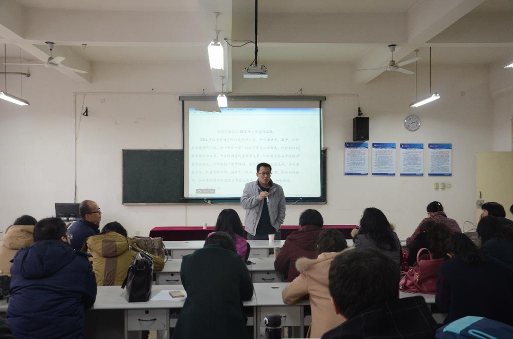 本次教代会共有4个议题。首先,经管学院工会委员杨勇就“2016年学院工会会费使用情况”向全体教师代表做了说明。院长张弘代表学院做“经管学院2016年工作总结”,并就近期教师们关注的绩效考核和聘岗问题进行了解释和总结。学院审计小组成员王育晓向与会代表就“2015年度经管学院经费审计”的情况进行说明。学院办公室主任陈燕作了“2014-2016年包干期绩效工资整体考核情况”的汇报。教师代表们认真听取了以上四个议题的情况汇报和说明。