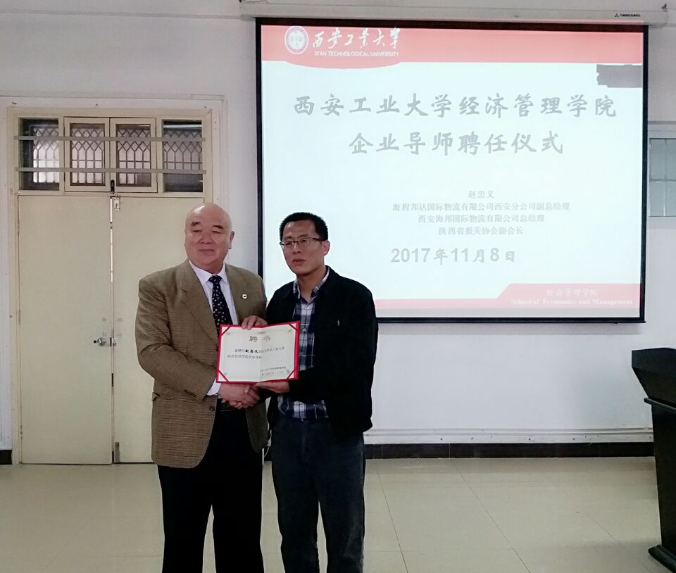 2017年11月8日下午,海程邦达国际物流有限公司西安分公司、副总经理赵忠义一行应邀来到经济管理学院,为国际贸易、物流专业、市场营销等专业的同学做了关于《一带一路”背景下国际物流一体化通关管理模式》的讲座,深入介绍了国际物流中通关业务的发展与变化状况,并为同学们的未来职业发展提供了许多中肯的建议。