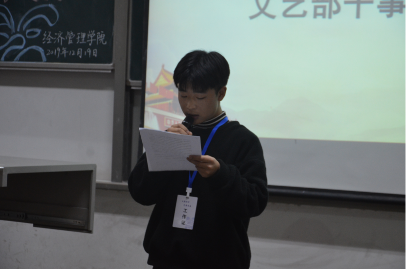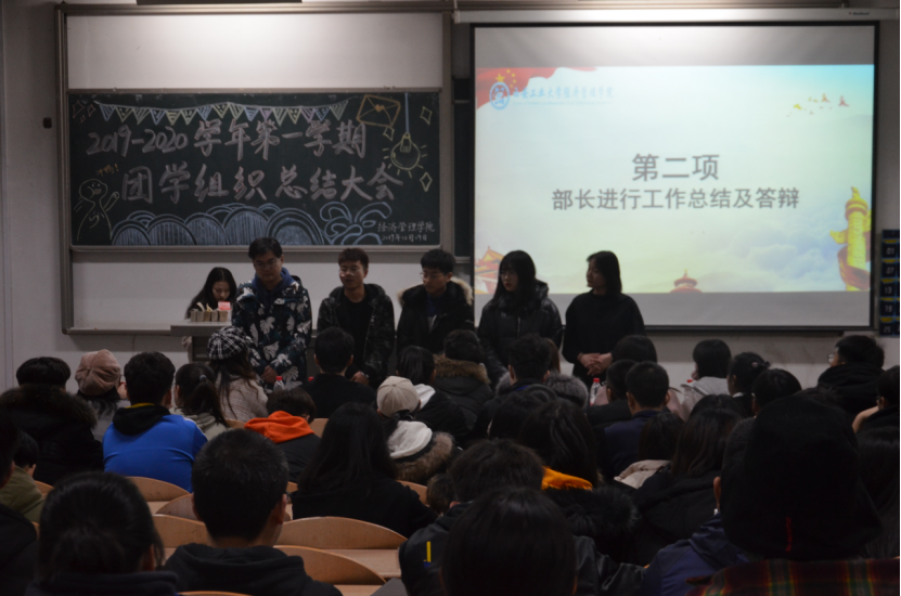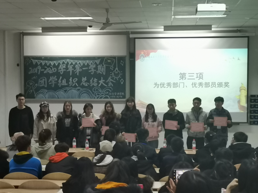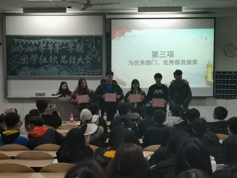 为回顾和分析过去一学期工作学习情况,从中总结经验和教训,确认入学以来的情况概述、成绩、存在的问题及今后努力方向。经济管理学院于2019年12月19日晚18:30在教1-101顺利召开2019-2020学年第一学期团学组织总结暨表彰大会。出席本次大会的嘉宾有:经济管理学院团委书记许金鑫老师,以及团学组织主席团。共计150余名学生干部参与本次大会,办公室干事张梦驰担任此次会议的主持人。