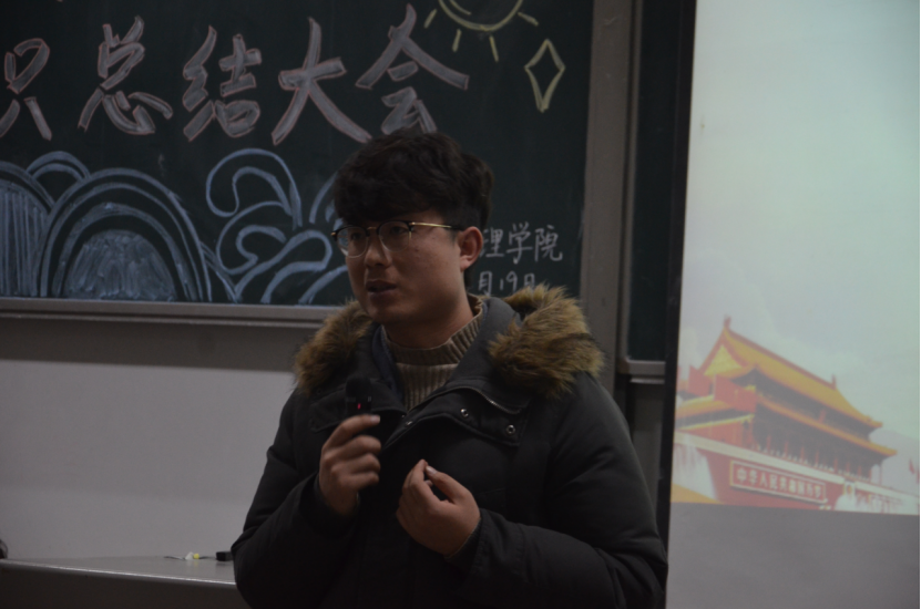 大会伊始,团学组织秘书长白宇洁作出讲话,她从活动开展与制度建设两个方面进行总结,肯定了过去一学期各项活动的贯彻实施及队伍建设的稳定发展。同时,她阐明学生干部应具有的“三心二意”之精神:责任心、自信心、包容心及满怀诚意,探寻工作意义。紧接着,团学组织各部门部长依次上台进行工作总结及答辩,回顾本学期的工作亮点,对存在的问题进行反思并提出改进方案,对下学期的工作进行规划,许金鑫老师也就具体问题进行了针对性的指导。随后,许金鑫老师及团学组织主席团为本学期优秀部门、优秀部员颁发荣誉证书并进行合影留念,优秀部员代表文艺部干事吴庆圆的精彩发言也使大会气氛达到高潮。最后,许金鑫老师肯定全体成员的工作成绩,结合具体实际提出看法,号召全体学生干部不忘初心,再接再厉,充分明确自身身份转换,希望大家总结经验与不足,克服现有的困难,更好地迎接下一学期的工作。
