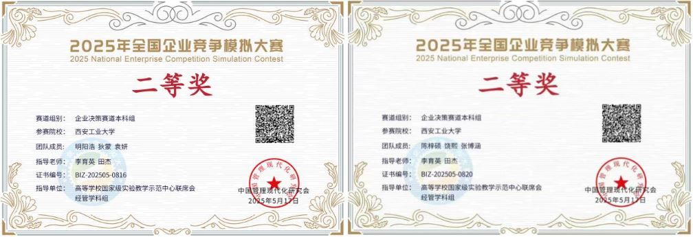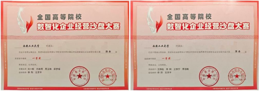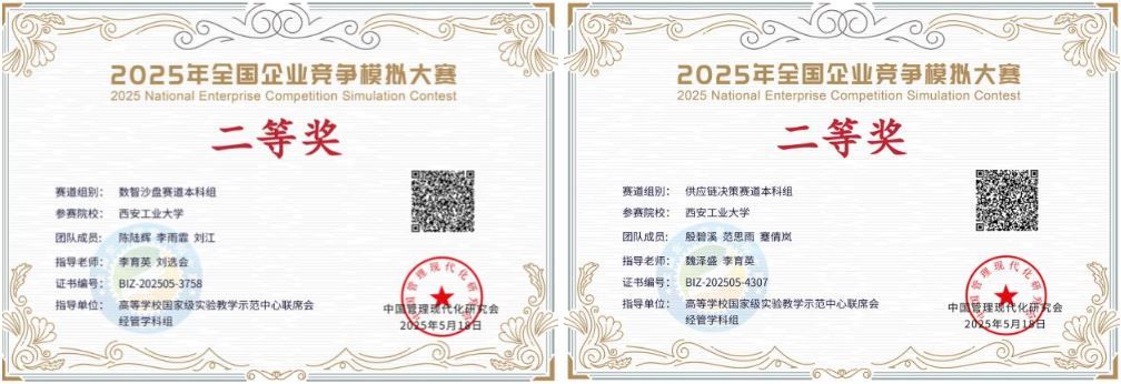 2025第二十一届全国高等院校数智化企业经营沙盘大赛,是为深入贯彻《教育强国建设规划纲要(2024-2035)》、《国务院办公厅关于深化产教融合的若干意⻅》等文件精神,配合国家高校创新创业人才培养燎原计划,由中国商业联合会携手新道科技股份有限公司举办,面向全国高校经管相关专业学生的高校商业模拟赛事。本届总决赛有来自全国高校的117支队伍参赛。在5月陕西省省赛中,我院两支代表队分别以全场总分第一、二名荣获省级一等奖两项。