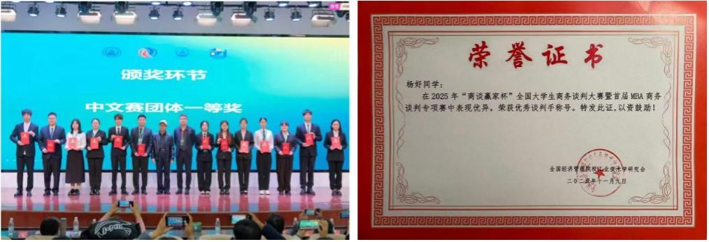 由全国经济管理院校工业技术学研究会主办的2025年“商谈赢家杯”全国大学生商务谈判大赛全国总决赛在长安大学顺利举办。该赛事自2016年创办以来,已成为国内商务谈判领域规模大、权威性高的大学生商务谈判专项赛事,大赛已列入教育部《2023全国普通高校大学生竞赛分析报告》观察目录,旨在通过模拟真实的商业谈判场景,全面培养提升大学生的商业创新实践能力、创新思维和综合竞争力。本届大赛吸引了来自全国61所院校的近300名学生参加现场总决赛角逐,我校经济管理学院代表队获全国一等奖1项、二等奖2项,优秀谈判手2项。