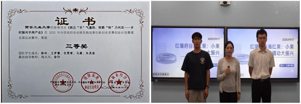 全国大学生电子商务“创新、创意及创业”挑战赛(简称三创赛)是在2009年由教育部委托教育部高校电子商务类专业教学指导委员会主办的全国性在校大学生学科性竞赛。第十五届全国大学生电子商务三创赛陕西赛区报名团队6885支,经过校级赛的严格选拔,共有来自全省48所高校的340支团队脱颖而出,晋级陕西省赛;来自全国31个省、市(自治区)和澳门特别行政区的216所高校的317支团队、1400余名师生,晋级国赛。本届大赛,我校斩获省级一等奖1项。