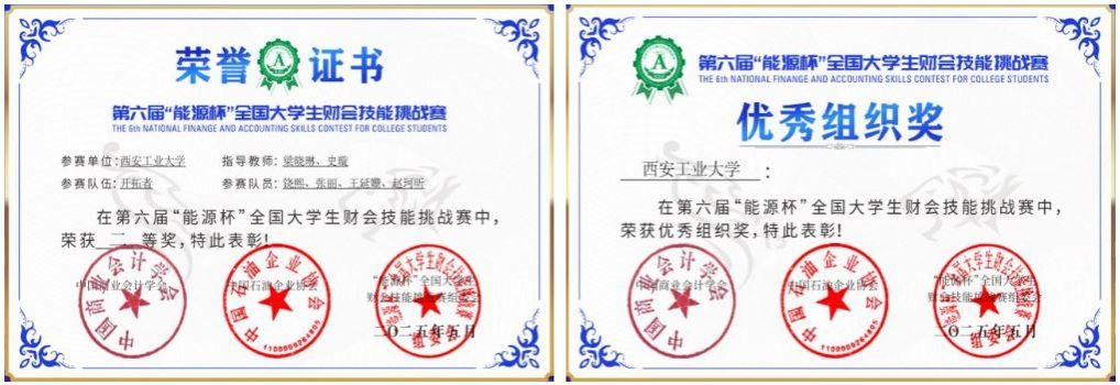由中国商业会计学会、中国石油企业协会发起,西安石油大学承办的第六届“能源杯”全国大学生财会技能挑战赛在2025年5月在西安如期举办。该竞赛已覆盖25省近百所高校,为提升大学生财会专业技能、检验高校财会教学改革成果提供了重要平台。我校经济管理学院代表队获得全国二等奖1项,并获得优秀组织奖1项。