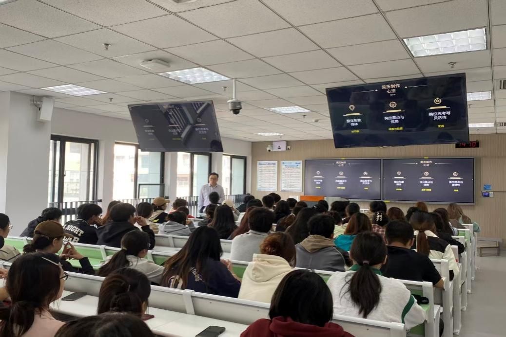 党龙首先聚焦简历制作这一“求职第一关”,从整体形象、重点与优势、换位思考与灵活性三方面讲述简历制作方法,以“价值人才金字塔”模型剖析企业用人标准,从基础技能、专业能力到综合素质再到核心价值观,指出区分优秀人才的关键,鼓励学生兼顾知识学习与沟通、创新等能力培养。