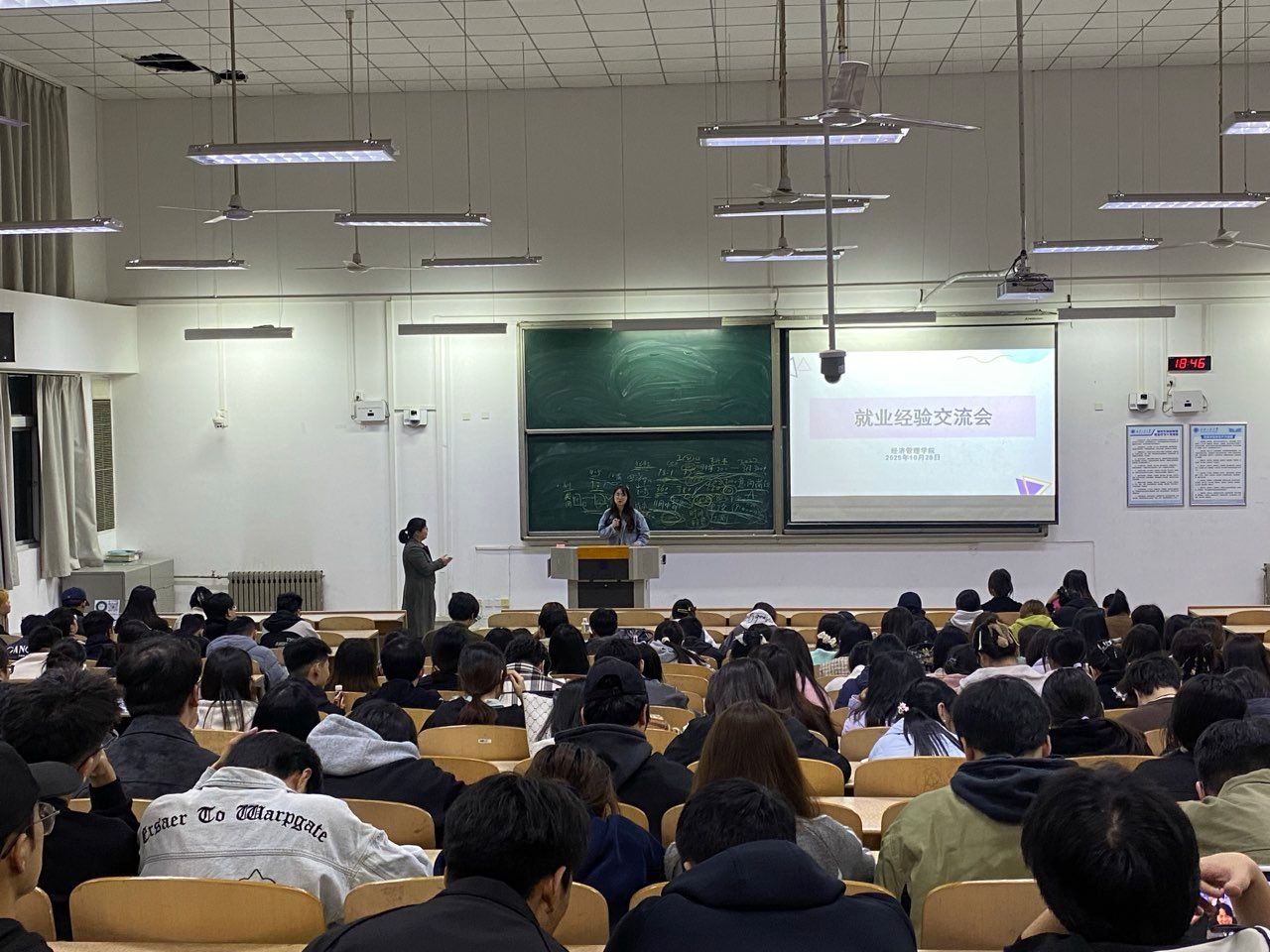 为切实做好2026届毕业生就业指导工作,帮助同学们明确就业方向、提升就业竞争力,10月28日晚,经济管理学院22级毕业生就业促进会主题大会在教1-205顺利召开。会议由毕业生辅导员张玉玲老师主持,22级毕业生参会,主要围绕就业形势分析、秋招尾期应对策略、求职经验分享及就业动员等内容展开。