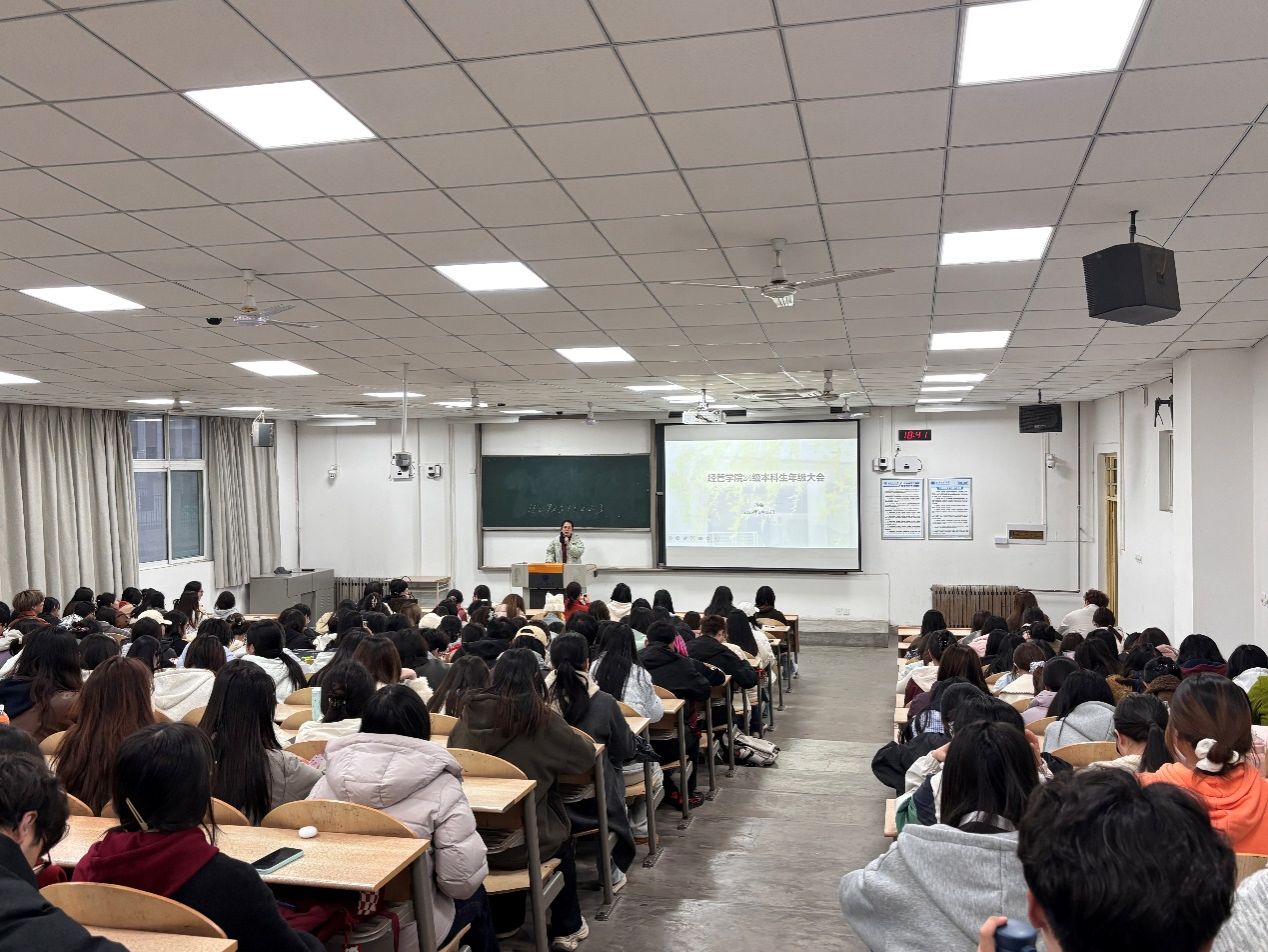 3月16日晚上,经管学院2024级本科生年级大会顺利召开,会议由辅导员孙会主持,全体2024级本科生参会。